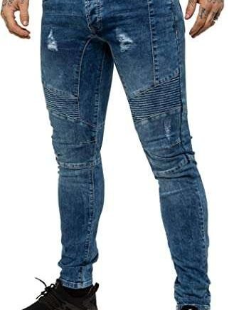 ENZO Mens Designer Stretch Skinny Fit Biker Denim Jeans Pants All Waist Sizes
