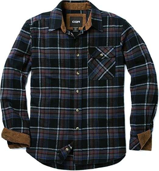 CQR Men’s All Cotton Flannel Shirt, Long Sleeve Casual Button Up Plaid Shirt, Brushed Soft Outdoor Shirts