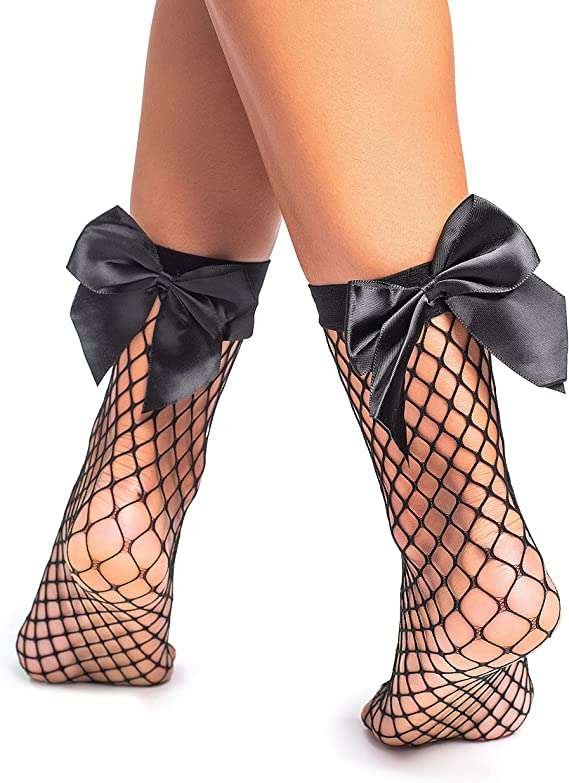 looksy Womens Fishnet Black Socks with Bows Ankle Short Stockings Free-Size