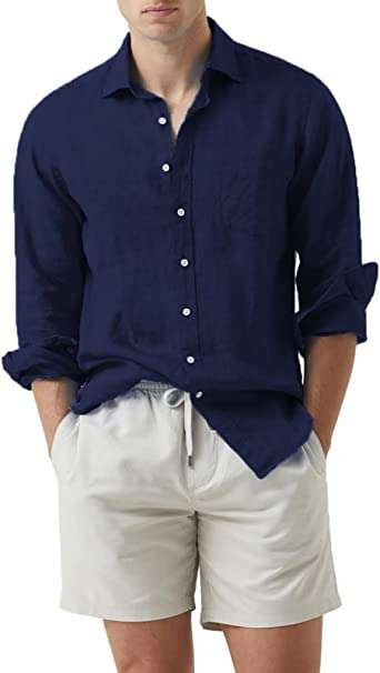 【Four Seasons】This linen shirts men is essential in mens wardrobe and greats for all season, Suitable for office, business, date, night out, club, travel and daily wear.