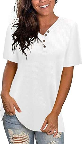 Womens Short Sleeve Tops Summer Tops Loose Blouses Daily T-Shirts Casual Tops Button Basic Tee Henley Tunic Jumpers