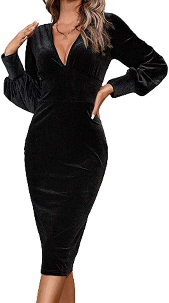 XIAOCILAO Women’s V-Neck High Waist Velvet Dress Sexy Elegant Reception Business Evening Dress